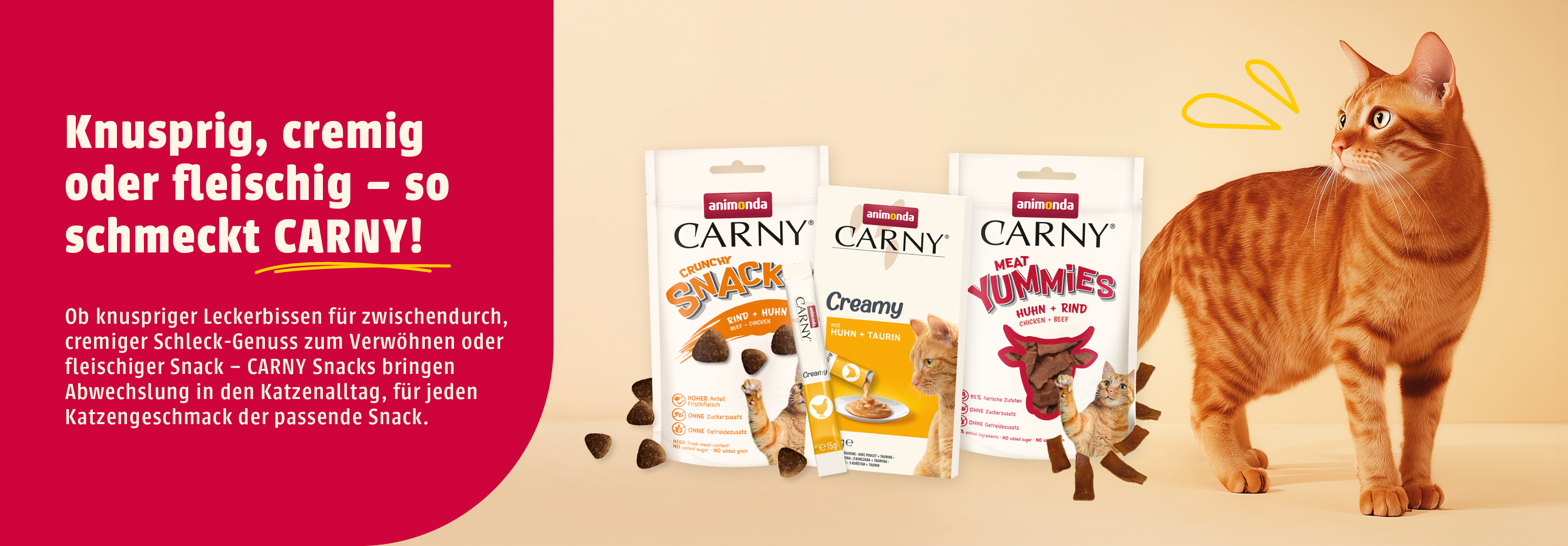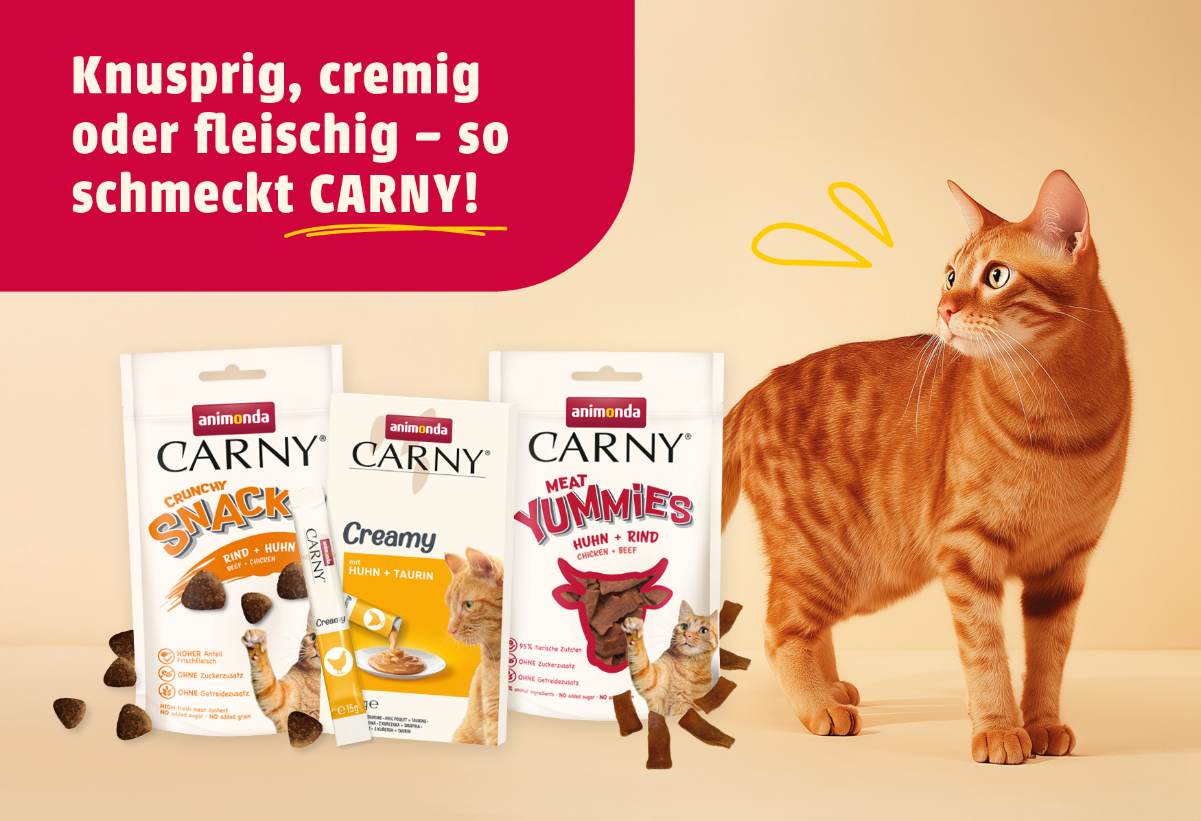 Von knusprigen Snacks für zwischendurch, über cremige Leckerbissen zum Verwöhnen, bis hin zu fleischigen Häppchen für spielerische Momente - CARNY hat für jeden Katzengeschmack etwas zu bieten.