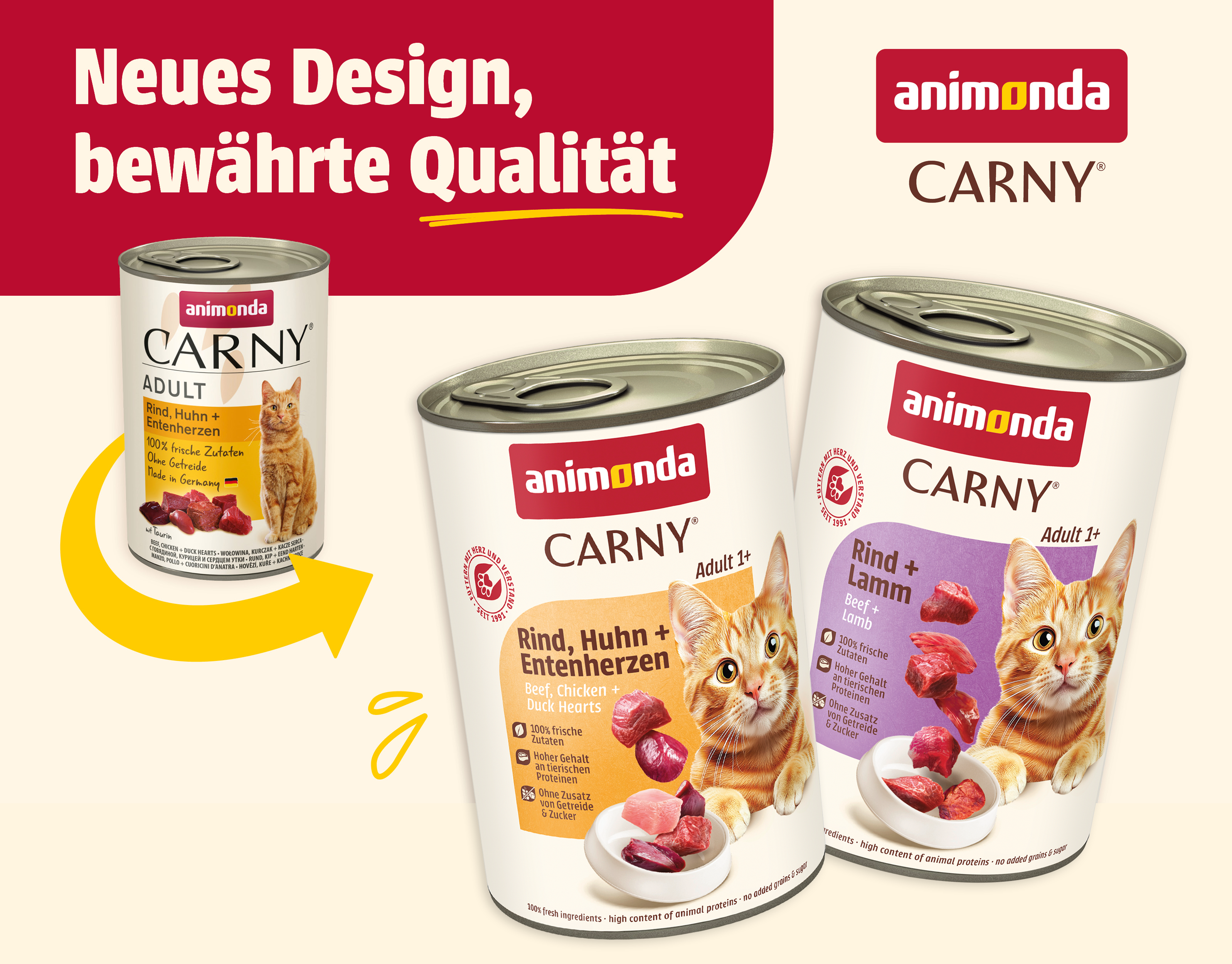 Are you looking for delicious, healthy and balanced nutrition at its best for your cat? Carny® Adult is the cat food brand for adult cats from 1 to 6 years old who enjoy the unparalleled taste of fresh, meaty ingredients. In addition, Carny® Adult provides adult cats with all the essential nutrients they need.