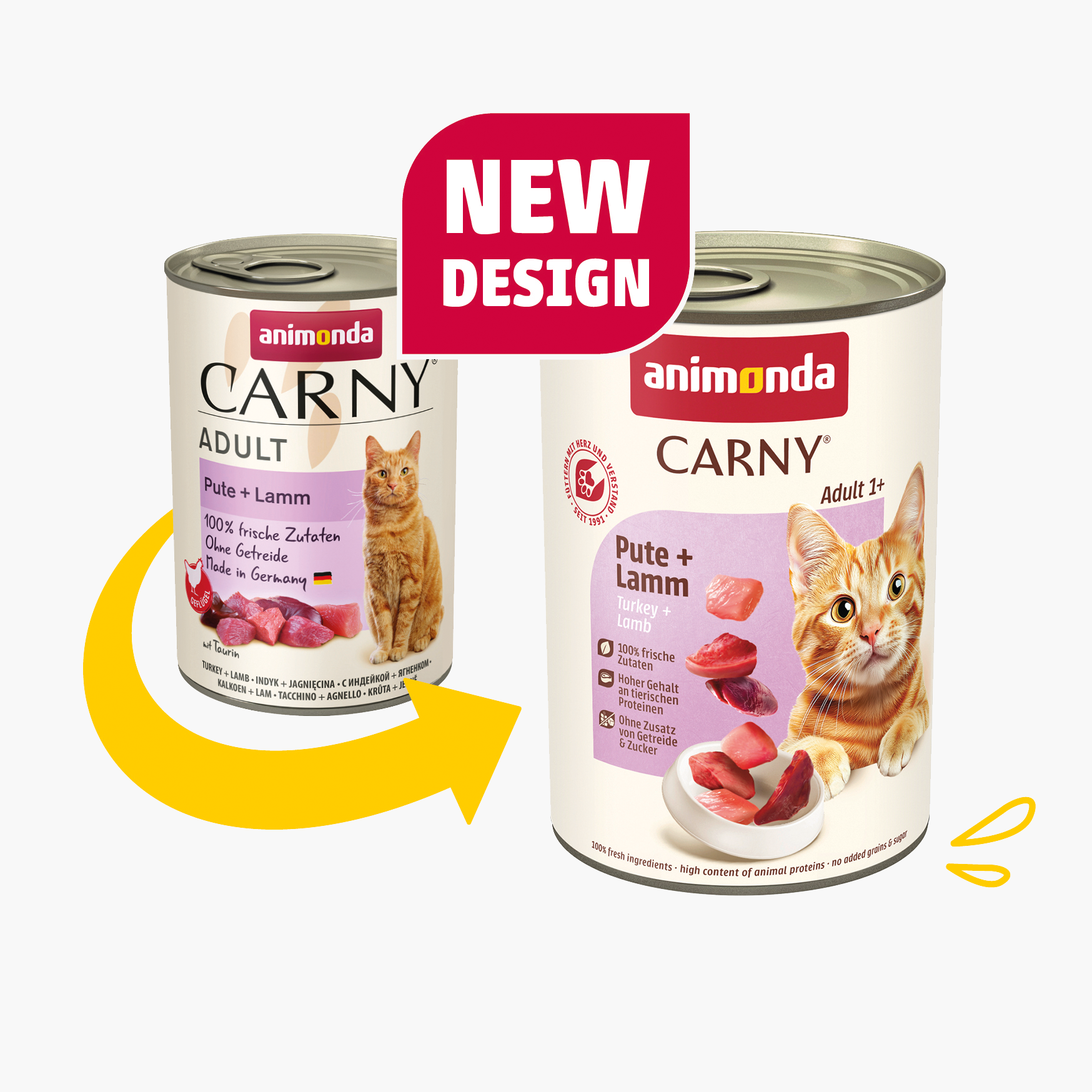 Köstliches Nassfutter, das Katzen begeistert: Carny Adult Pute + Lamm. Dieses Nassfutter überzeugt mit leicht bekömmlicher Pute und dem besonderen Geschmack vom Lamm. Ein hoher Anteil an frischen, fleischlichen Zutaten sorgt mit jeder Mahlzeit für den besonderen Genuss.